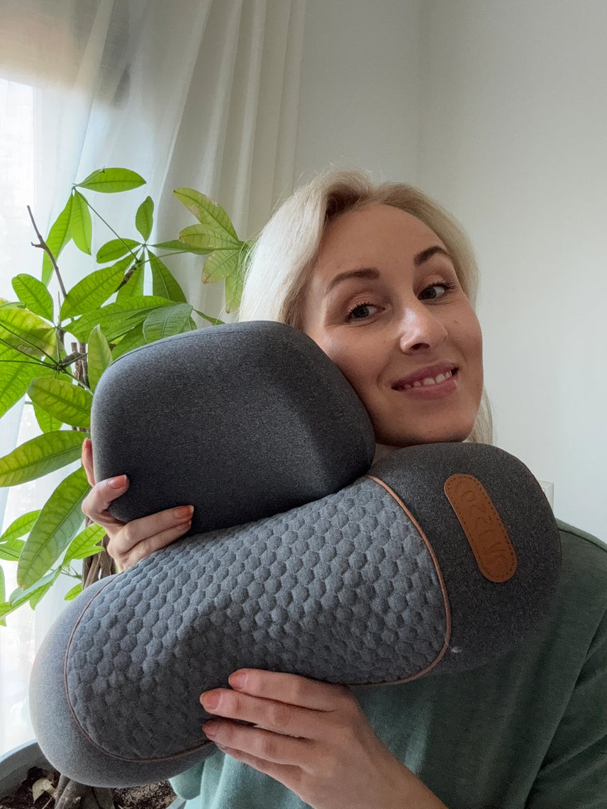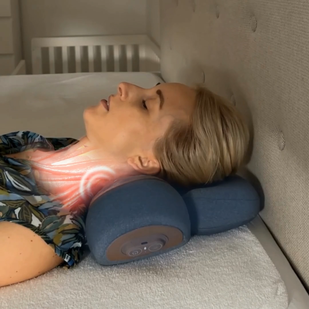 15 minutes par jour avec Morphée+ : massage + étirement + chaleur = circulation stimulée, muscles décompressés, courbe naturelle du cou restaurée.